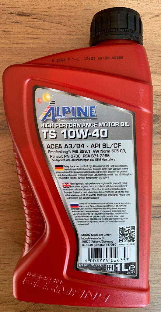 Ниже Вы можете прочитать отзывы на Масло полусинтетическое Alpine TS 10W-40 1л, арт. 0100081, ознакомится с подробными характеристиками, посмотреть интересные обзоры и фотографии на Масло полусинтетическое Alpine TS 10W-40 1л, арт. 0100081.