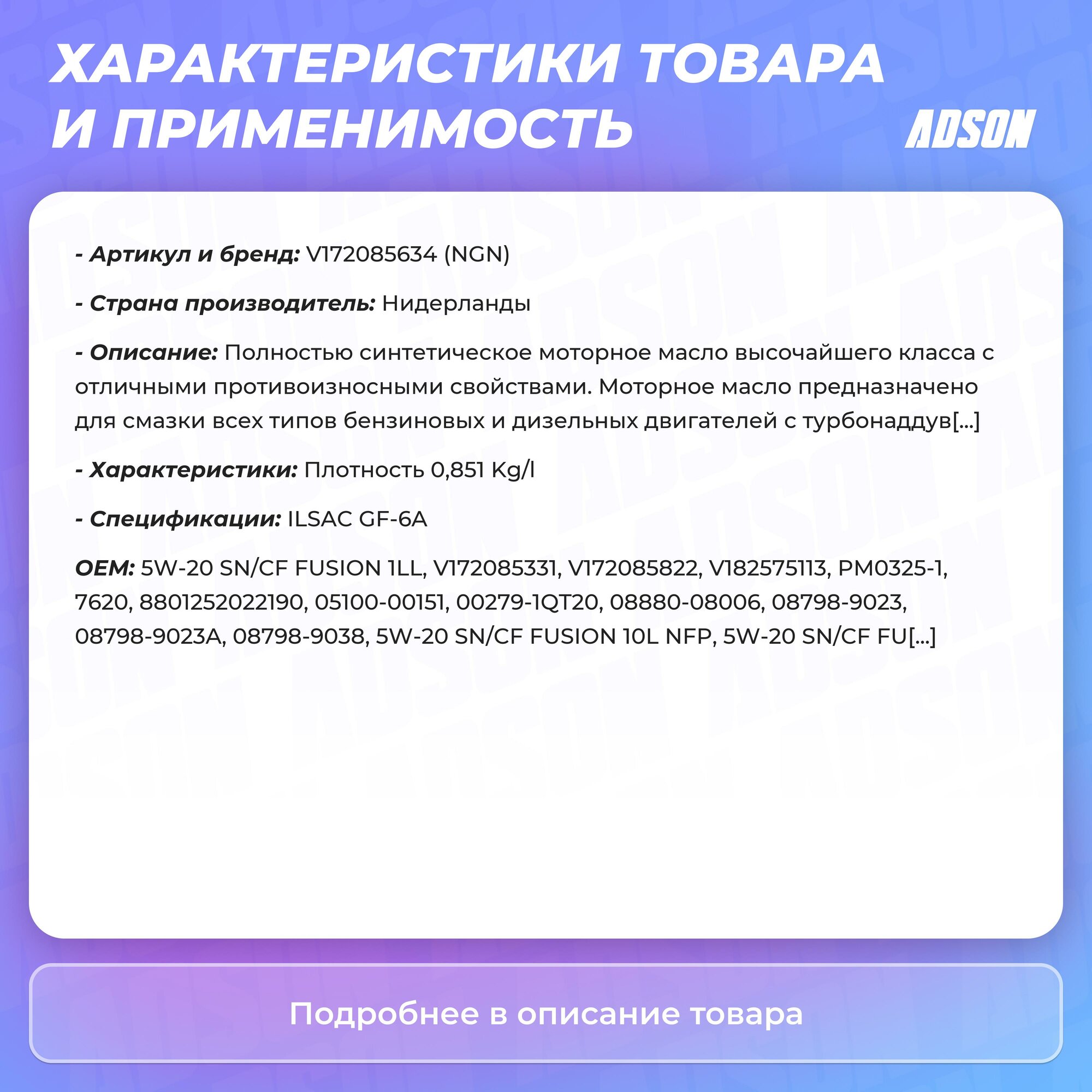 NGN V172085331 Моторное масло