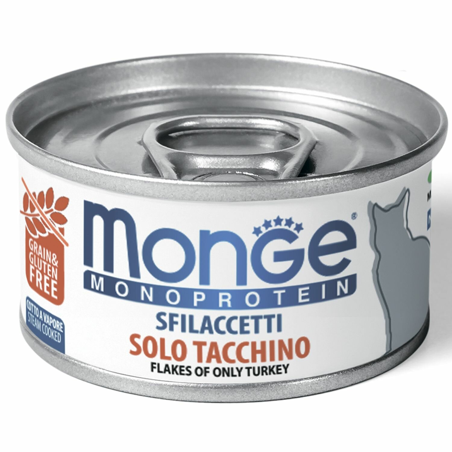 Влажный корм Monge Cat Monoprotein для кошек, мясные хлопья из индейки, консервы 80 г