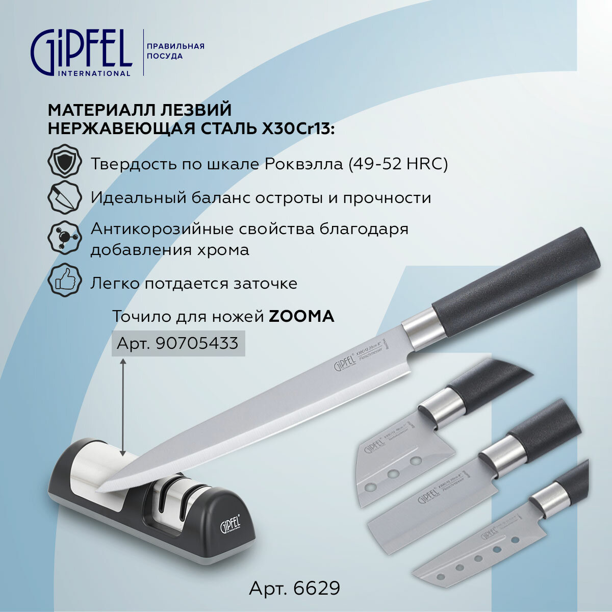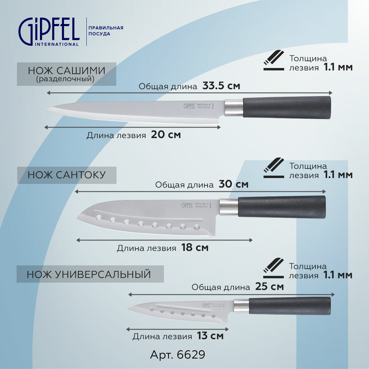 Набор кухонных ножей Gipfel Japanese 6629 серебристый металлик/черный интересное: