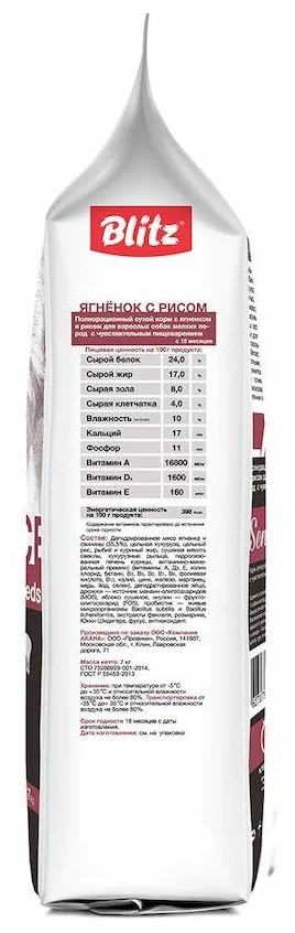 Blitz Ягненок и рис 2кг корм для собак мелких пород