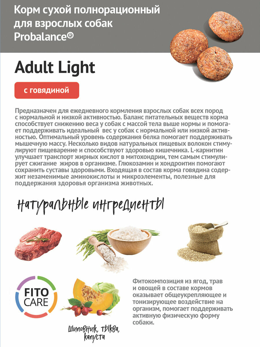 PROBALANCE Dog Adult Light - Сухой корм для Собак всех пород с низкой и нормальной активностью 15 кг