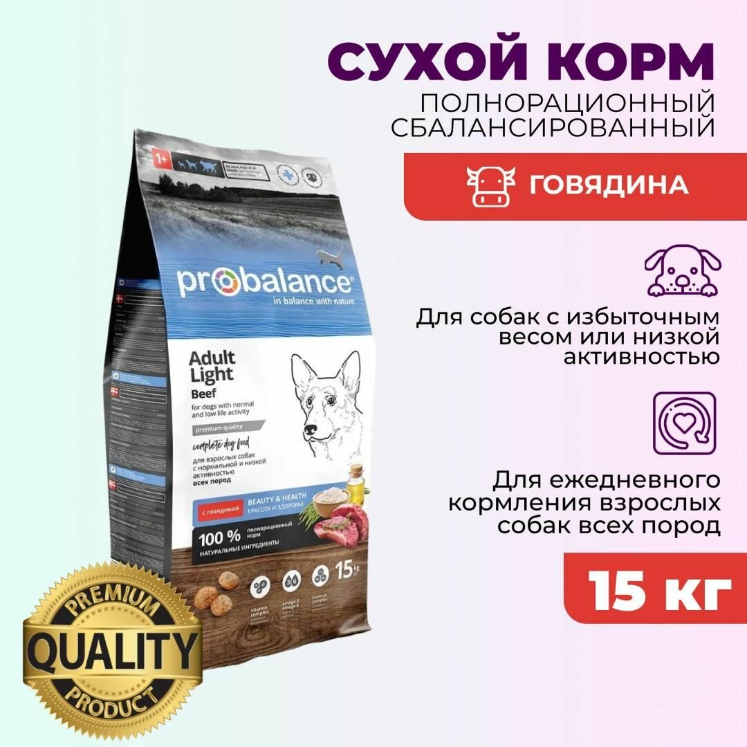 Корм для собак ProBalance Adult Light сухой для взрослых собак всех пород, 15 кг