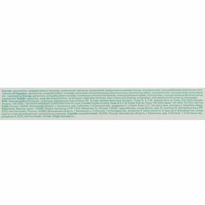 | Минусы: | Протекают сильно никакой впитываемости, размер больше чем указан на упаковке, растежки вообще на 5 минут |
