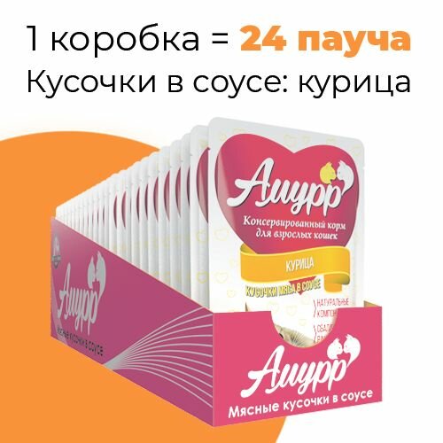 Амурр корм для кошек кусочки мяса в соусе со вкусом курицы 24х100г