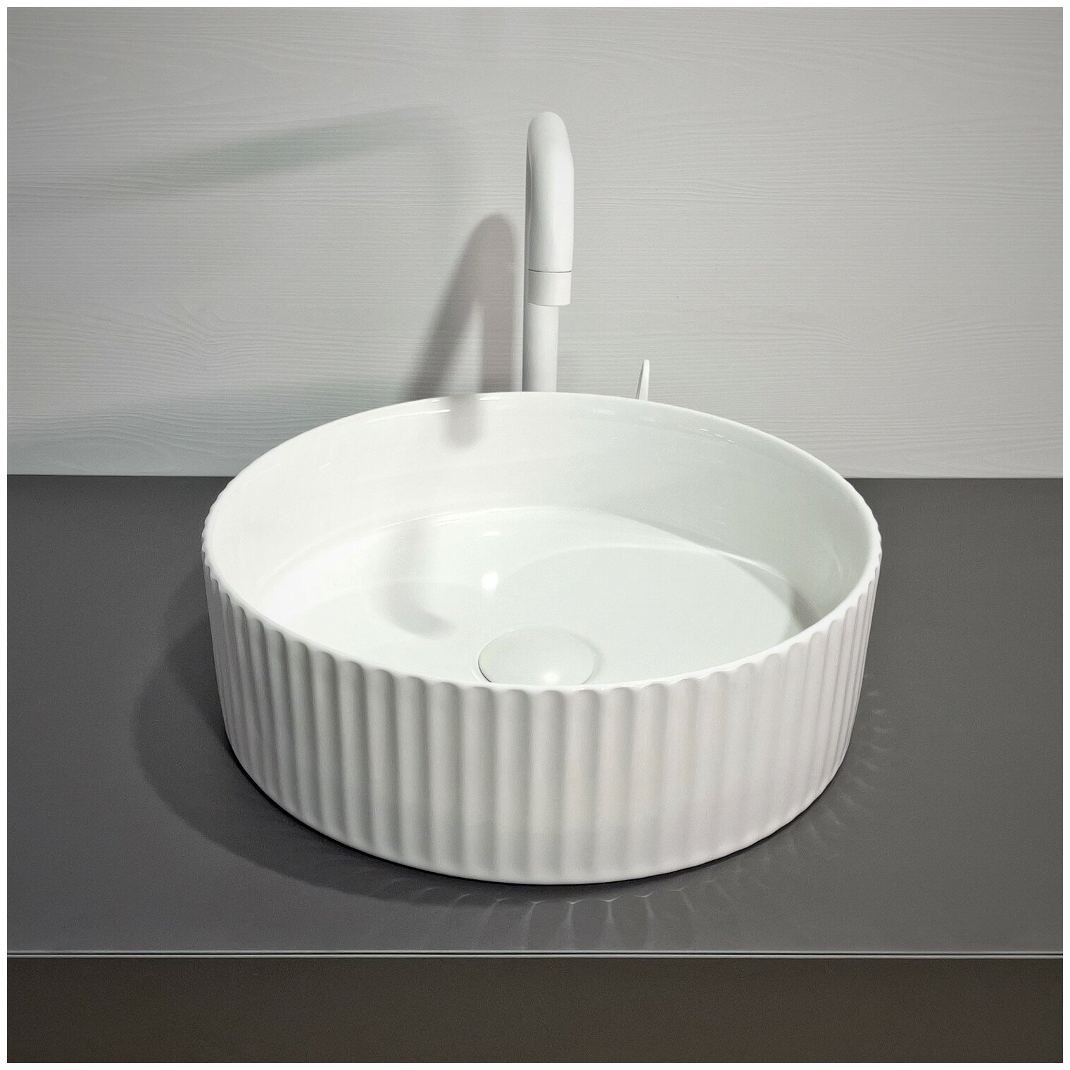 Накладная круглая рифленая раковина Comforty 78728 для ванной для установки на столешницу