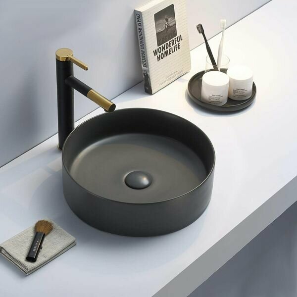 Черная круглая накладная раковина для ванной 40 см Comforty 9110MB, матовая, для установки на столешницу