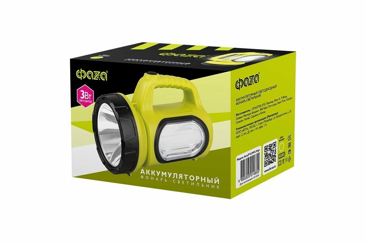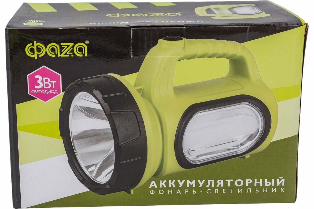 Купить Аккумуляторный фонарь LED Фаzа, 2в1 AccuF7-L3W/L10gn, желтый 192х132х108 мм
