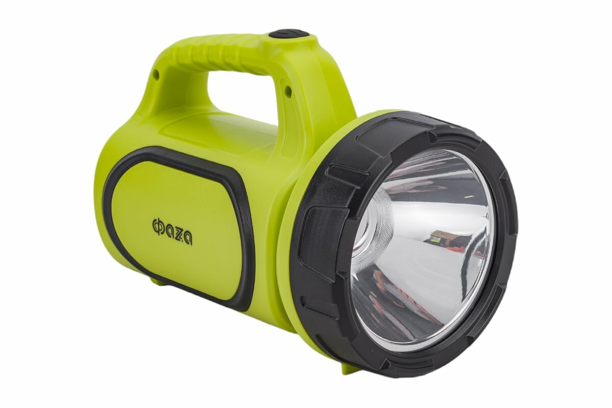 Фонарь-прожектор AccuF7-L3W/L10-gn 3Вт 160лм + боков. панель 10х0.25Вт 50лм IP20 аккум. 900мА.ч дальность луча прожектора 300м зел. ФАZА 5014855