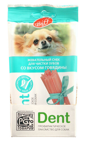 Ниже Вы можете прочитать отзывы на Бифф (Biff) 10шт х 63г жев. снек Dent для чистки зубов со вкусом говядины для мелких собак, ознакомится с подробными характеристиками, посмотреть интересные обзоры и фотографии на Бифф (Biff) 10шт х 63г жев. снек Dent для чистки зубов со вкусом говядины для мелких собак.