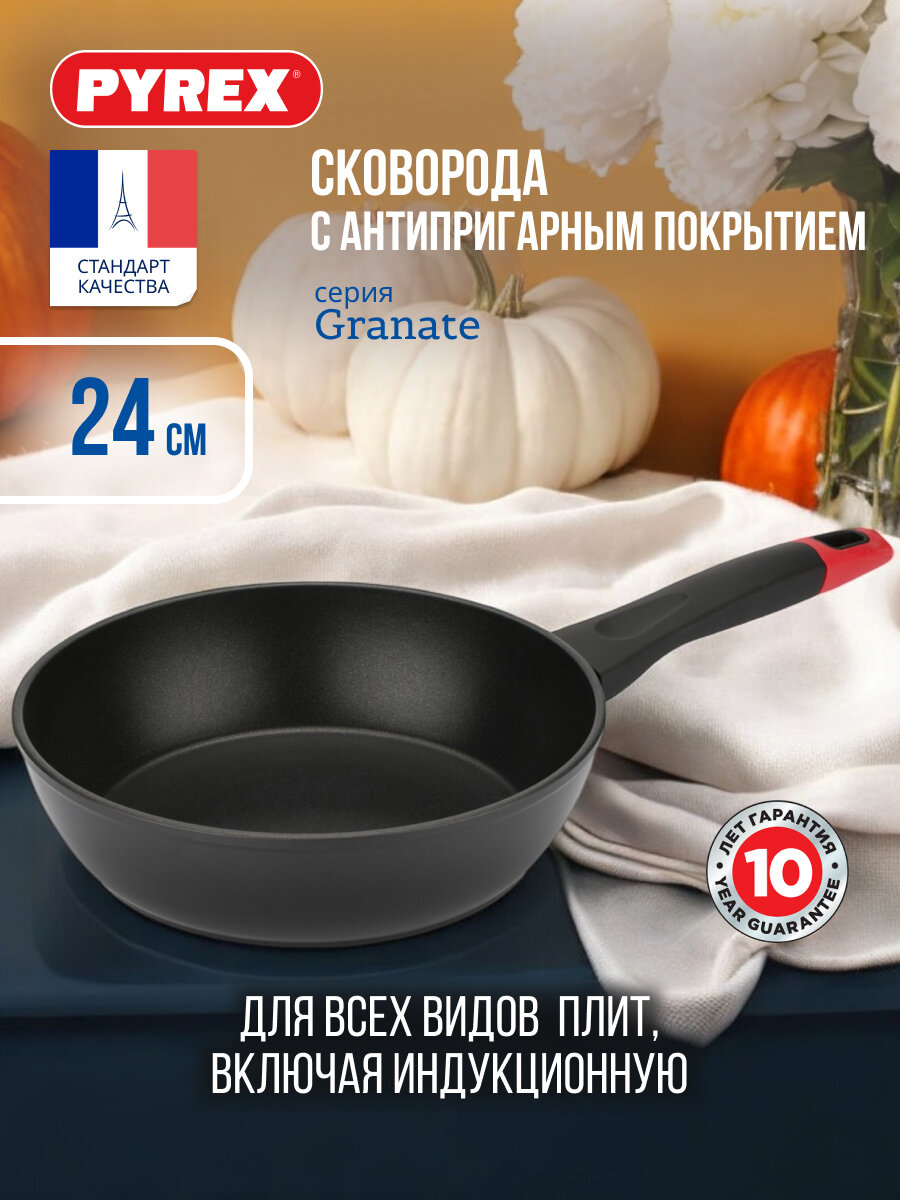 Купить Сковорода глубокая с антипригарным покрытием Pyrex Granate 24см, для всех типов плит, для индукции