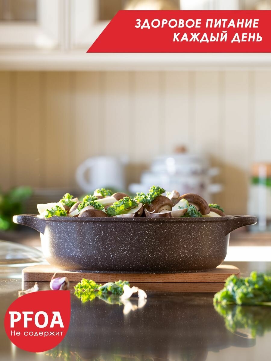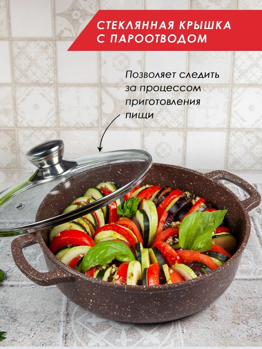 Жаровня антипригарная литая 26см со стеклянной крышкой Доломит ТМ Традиция готовить с любовью