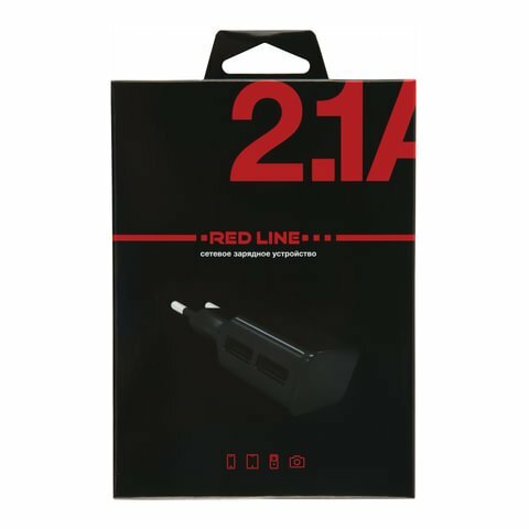 Зарядное устройство сетевое (220 В) RED LINE NT-2A, 2 порта USB, выходной ток 2,1 А, черное, УТ000009404