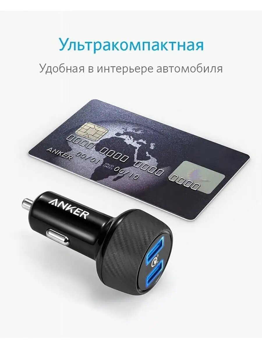 Автомобильное зарядное устройство ANKER PDrive Sped2 A2228 39W=2P б/к BK