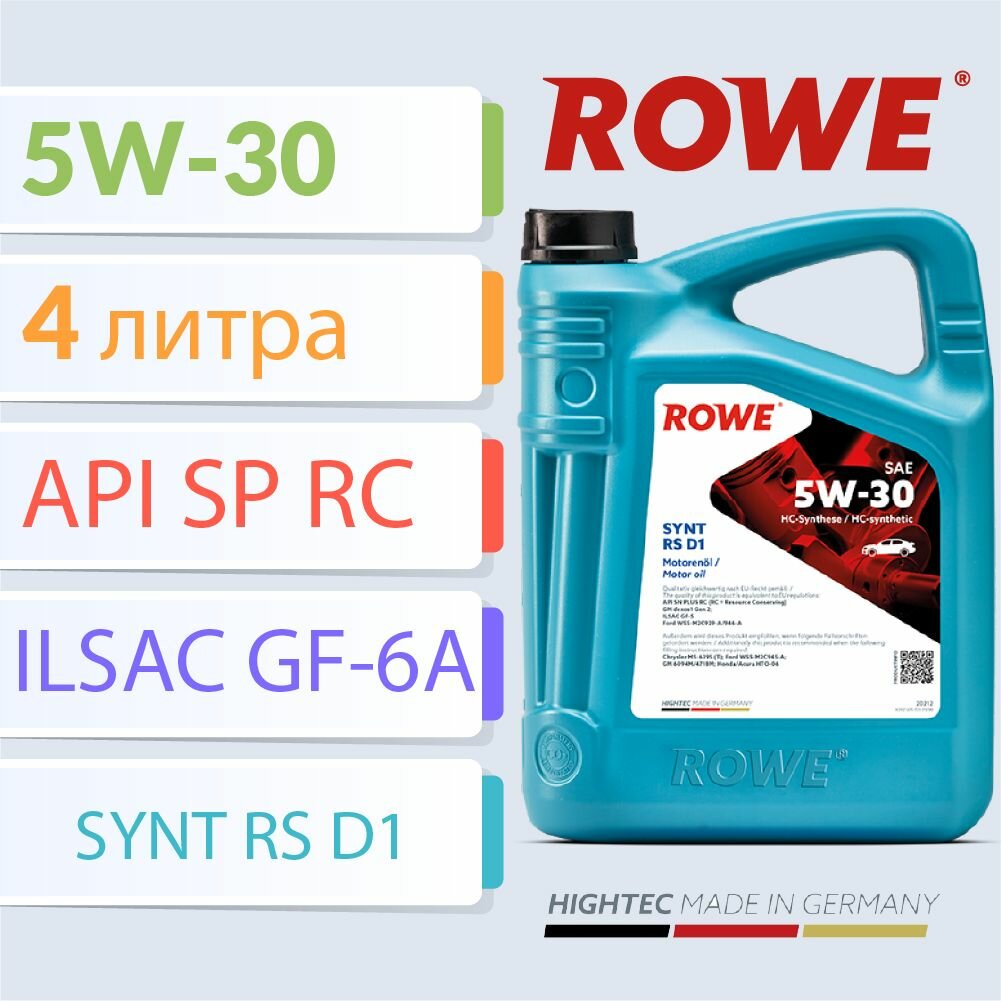 Масло Rowe 5/30 Hightec Synt RS D1 SP/SN PLUS ,ILSAC GF-5/-6A, WSS-M2C929-A, dexos1 Gen 2 синт. 5 л ROWE 20212-0050-99 | цена за 1 шт