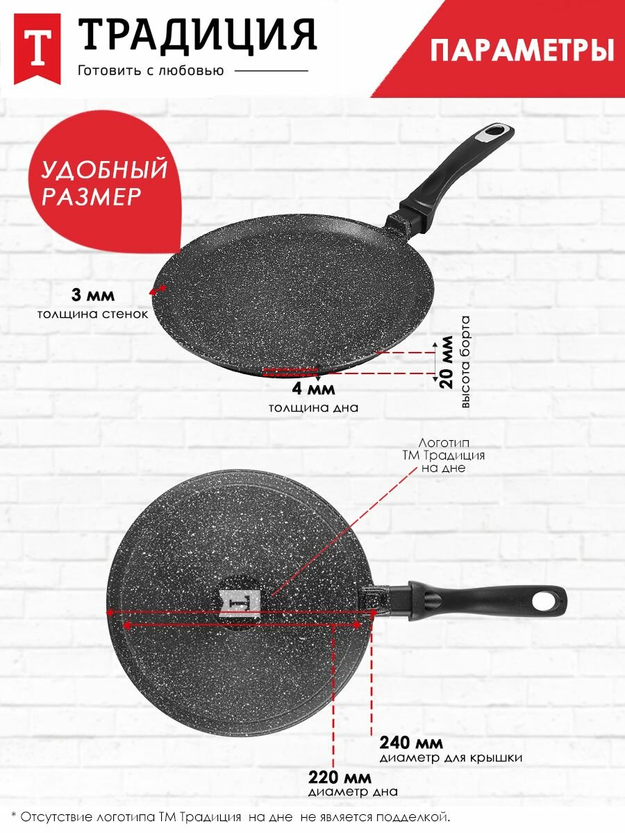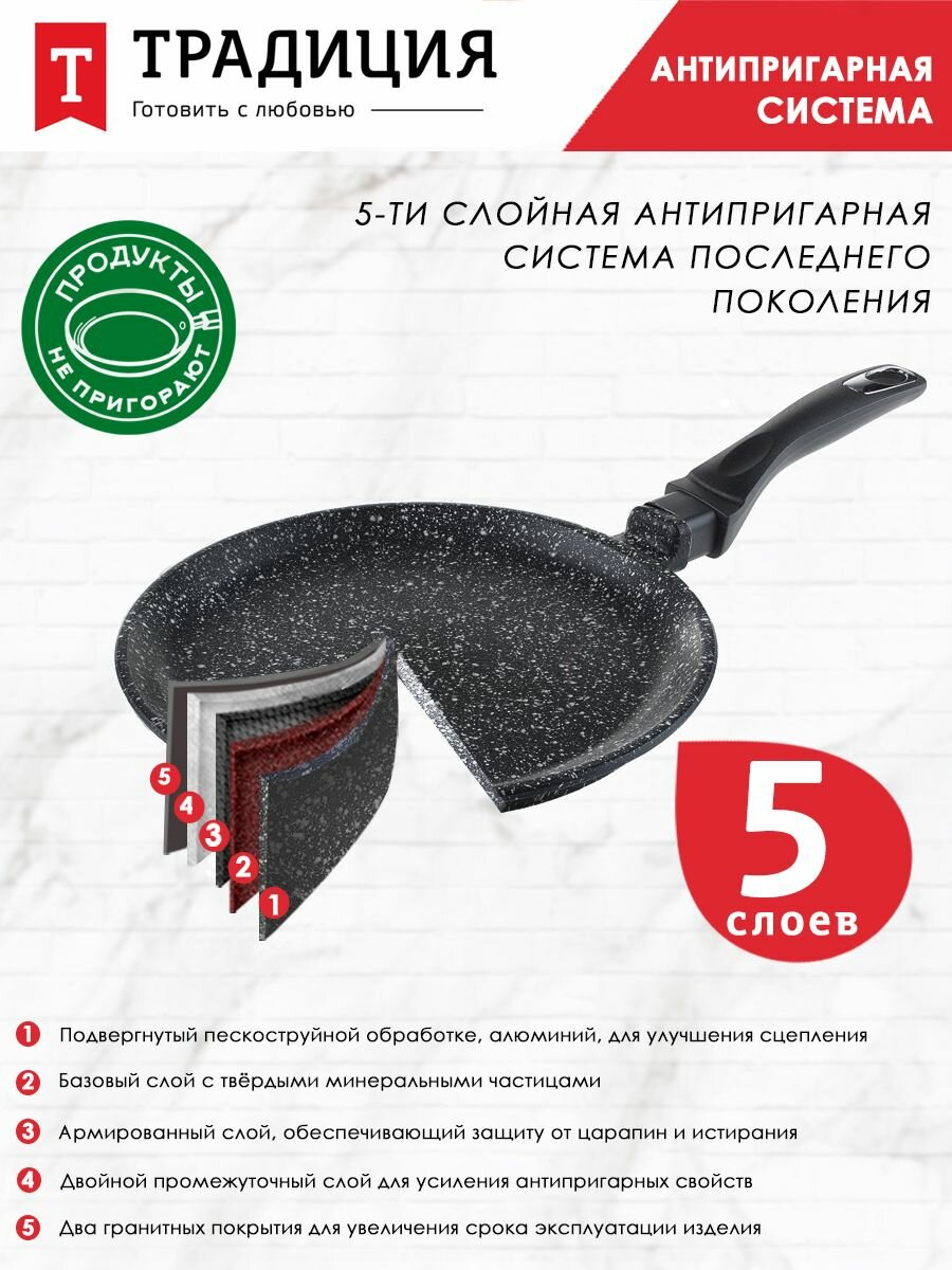 Сковорода блинная с антипригарным покрытием литая 24см Гранит ТМ Традиция готовить с любовью интересное: