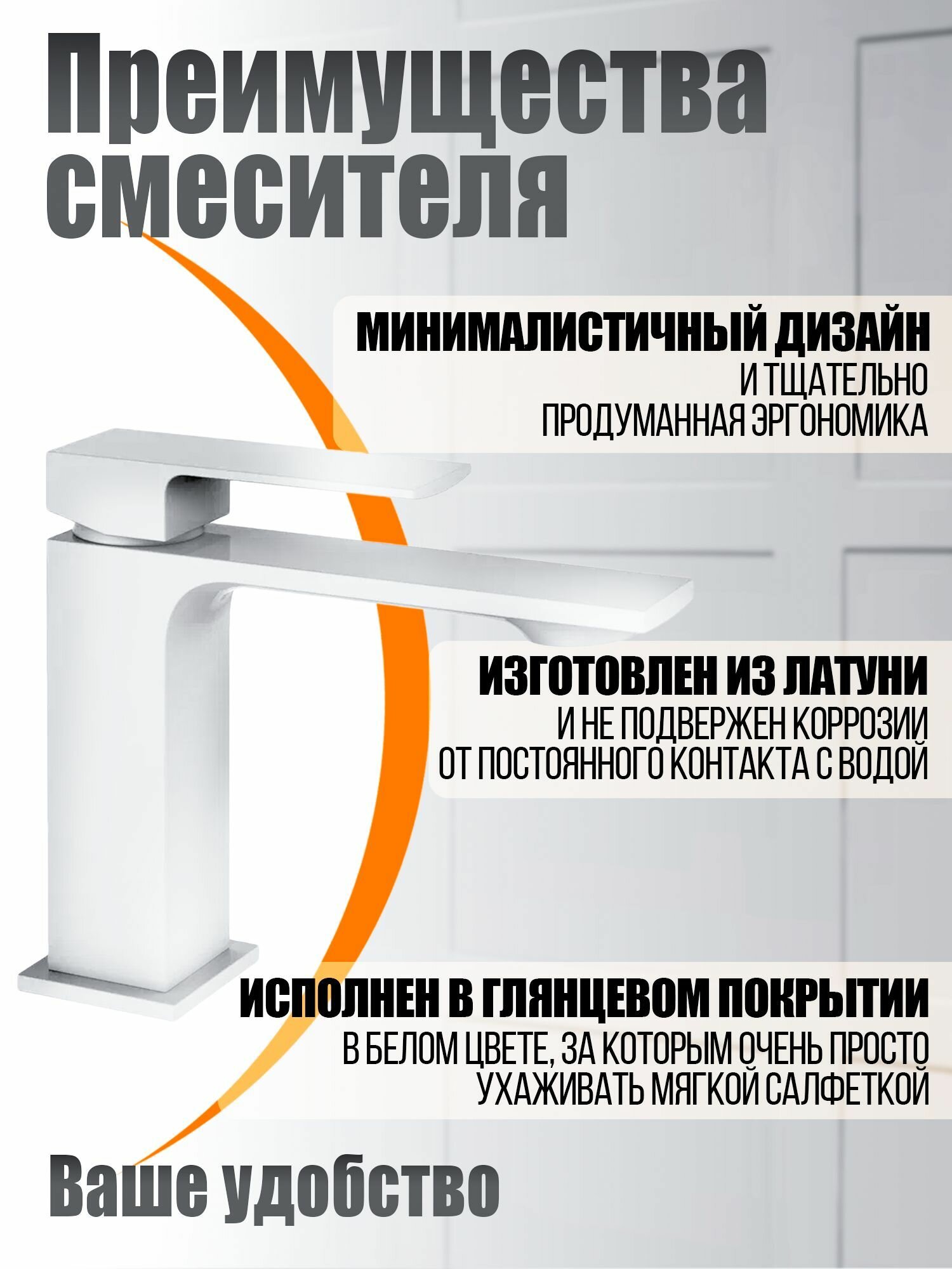 Смеситель для раковины в ванную комнату, латунь, фиксированный излив Orange Lutz M04-021w, белый