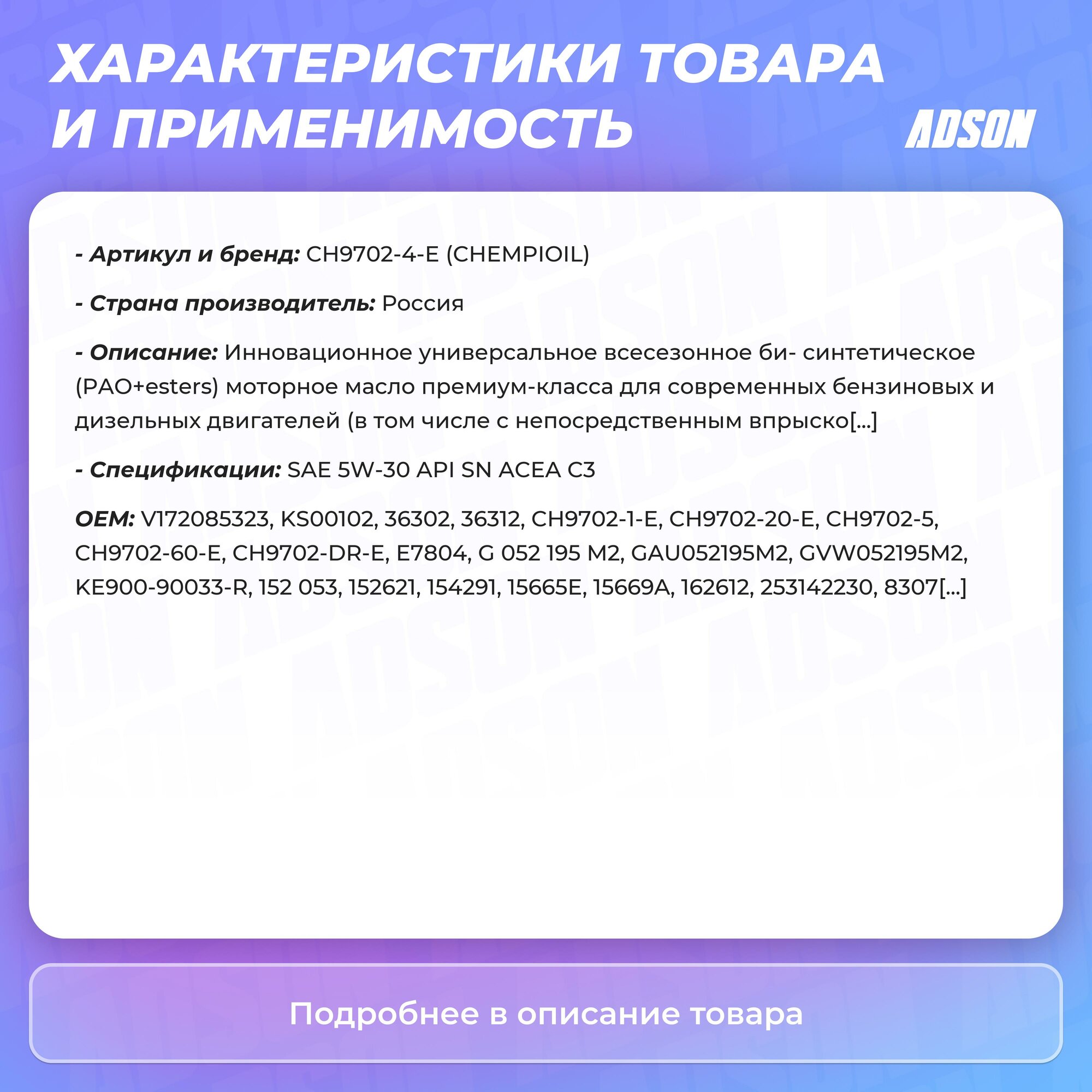 СохранитьCHEMPIOIL CH9702-4-E Масло моторное Ultra LRX 5W-30 4L интересное: