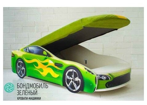Детская кровать-машина Бельмарко "Бондмобиль зеленый" с подъемным механизмом и матрасом