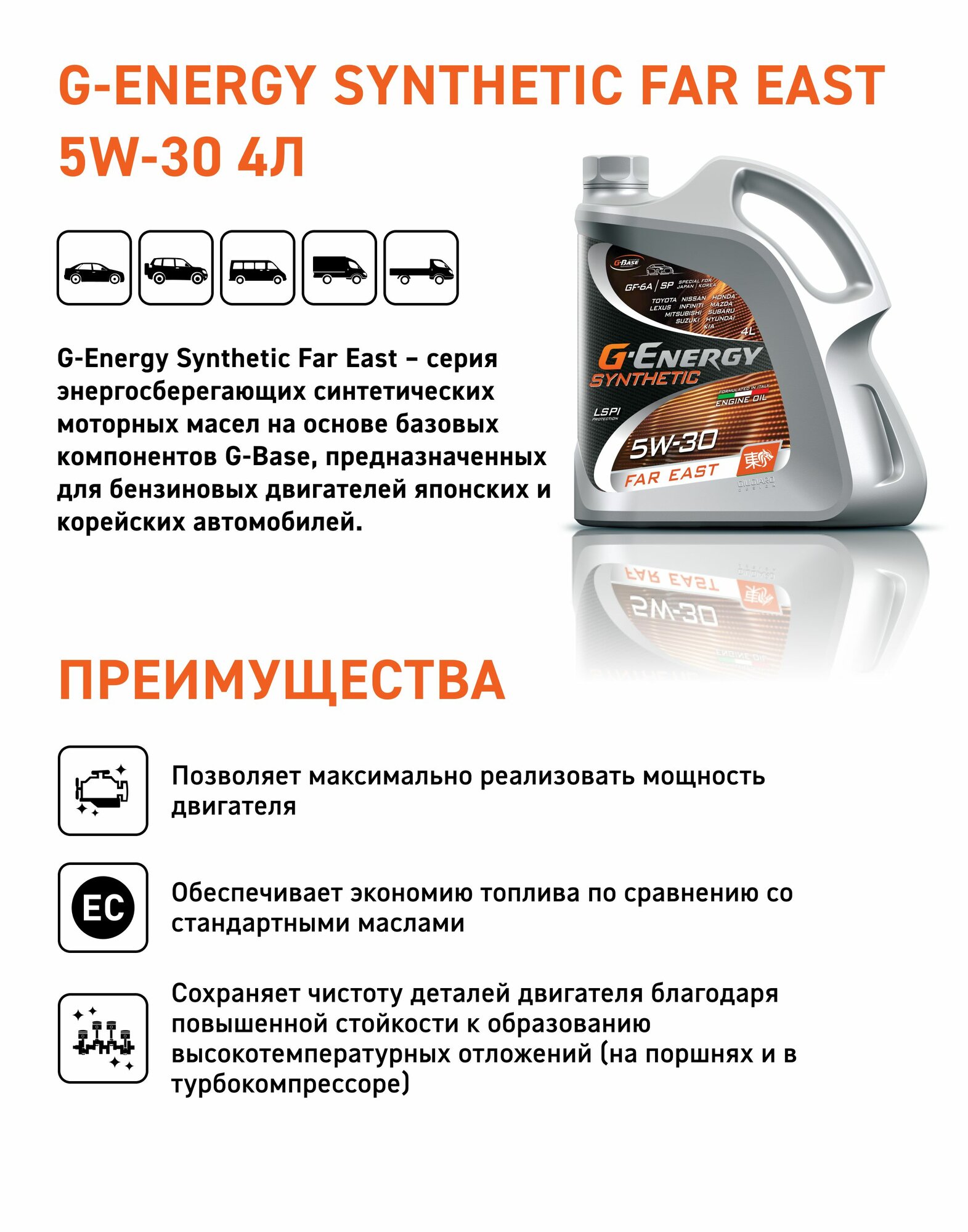 Ниже Вы можете прочитать отзывы на G-Energy Synthetic Far East 5W-30, ознакомится с подробными характеристиками, посмотреть интересные обзоры и фотографии на G-Energy Synthetic Far East 5W-30.