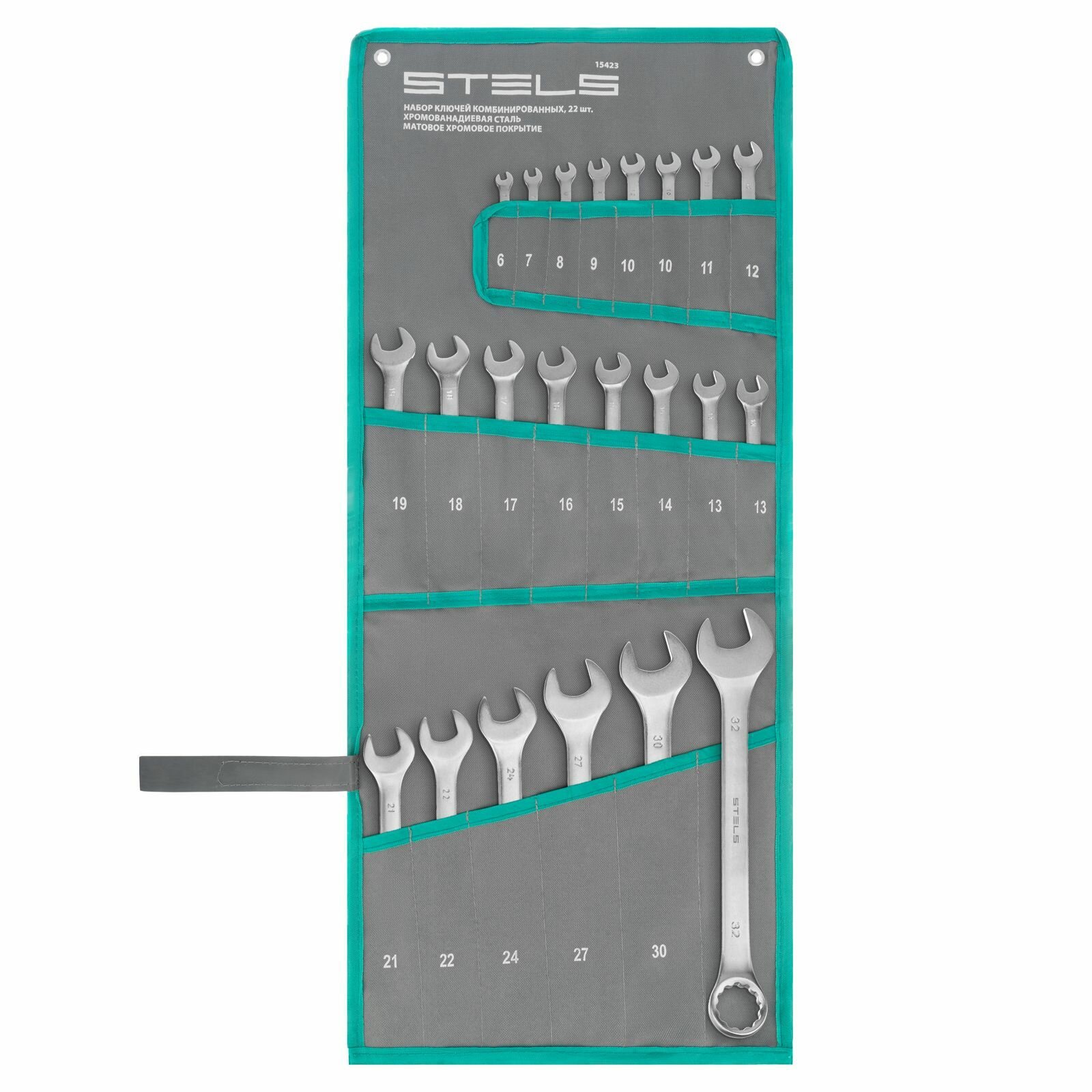 Набор ключей комбинированных Stels 6-32 мм 22 шт, CrV, матовый хром 15423