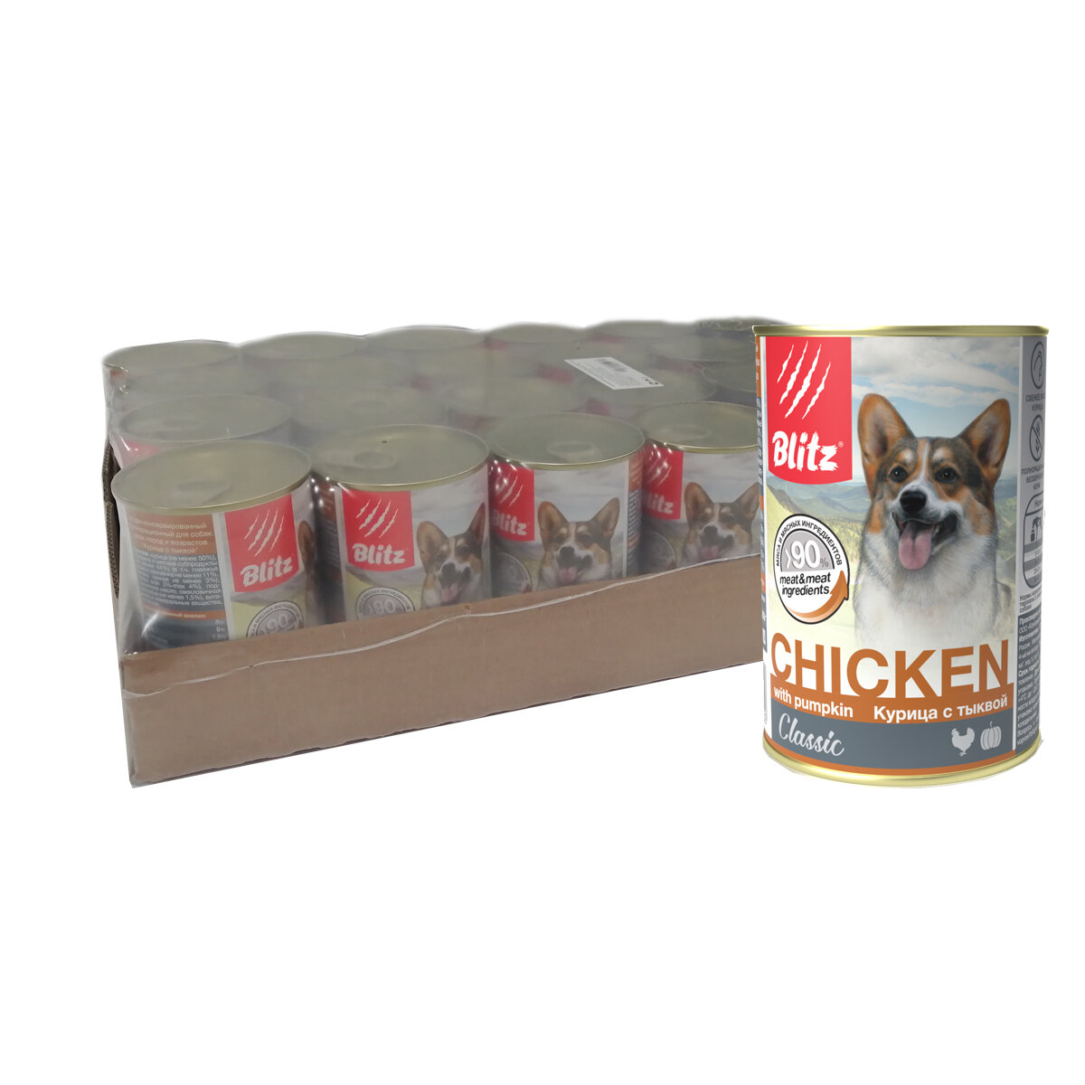 Консервы BLITZ Classic Dog для собак Курица с тыквой 750 г, (1 шт) Полнорационный влажный корм