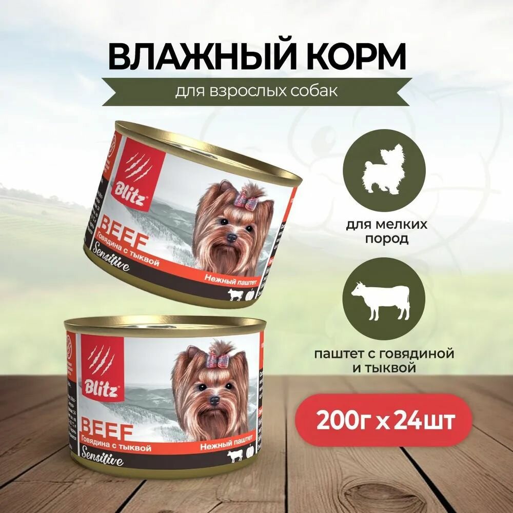 Купить Blitz Sensitive консервы для собак мелких пород, с говядиной и тыквой - 200 г х 24 шт