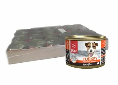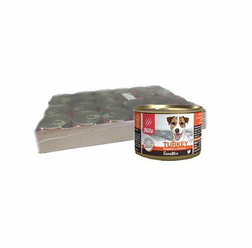 Купить Blitz Sensitive консервы для собак всех пород с чувствительным пищеварением, с индейкой и печенью - 200 г х 24 шт