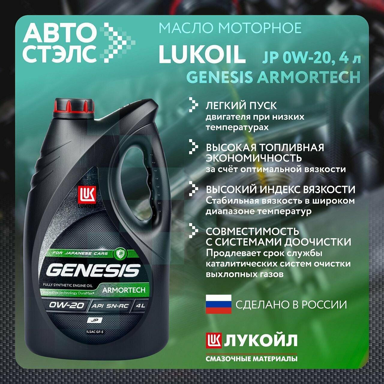 Моторное масло LUKOIL GENESIS ARMORTECH JP 0W-20, 4 л