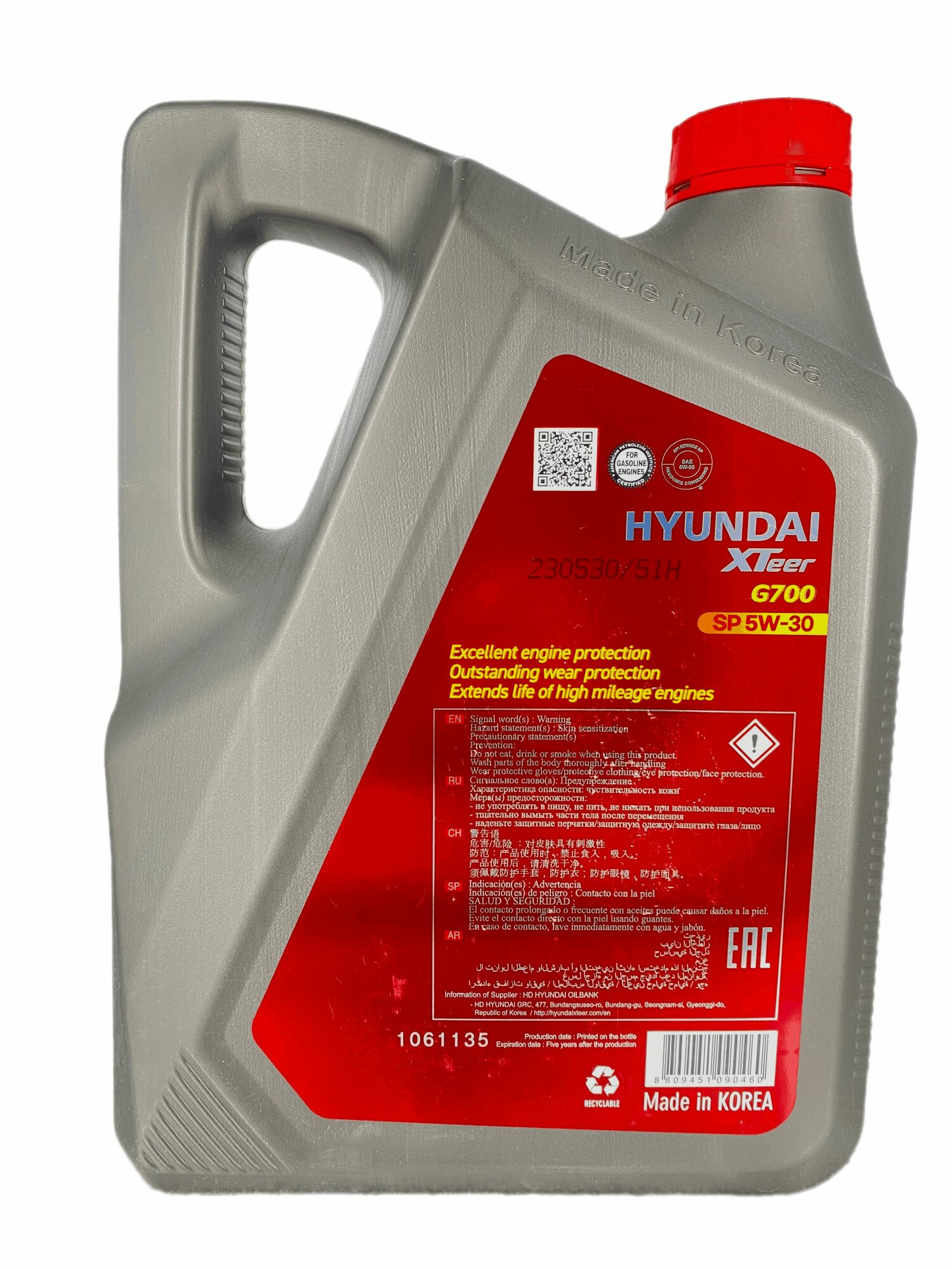 HYUNDAI-XTEER 1061135 Масло моторное Hyundai Xteer Gasoline G700 SP 5W-30 6 л 1061135