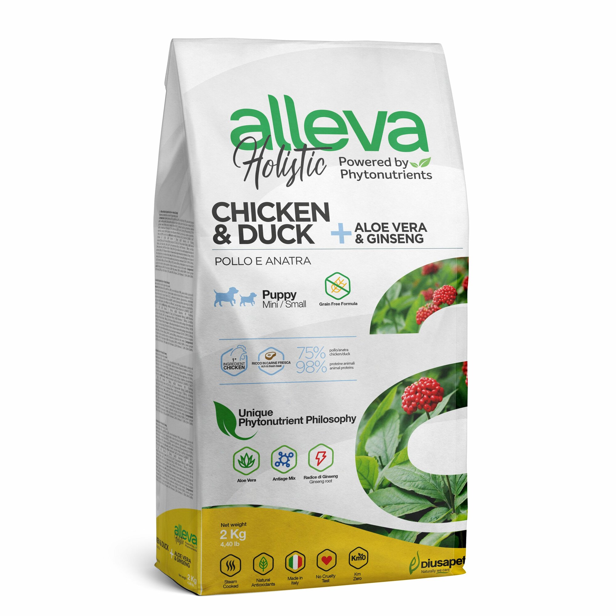 Alleva Holistic Puppy/Junior Chicken & Duck Mini сухой корм для щенков и юниоров с курицей и уткой, алое вера и женьшенем - 2 кг
