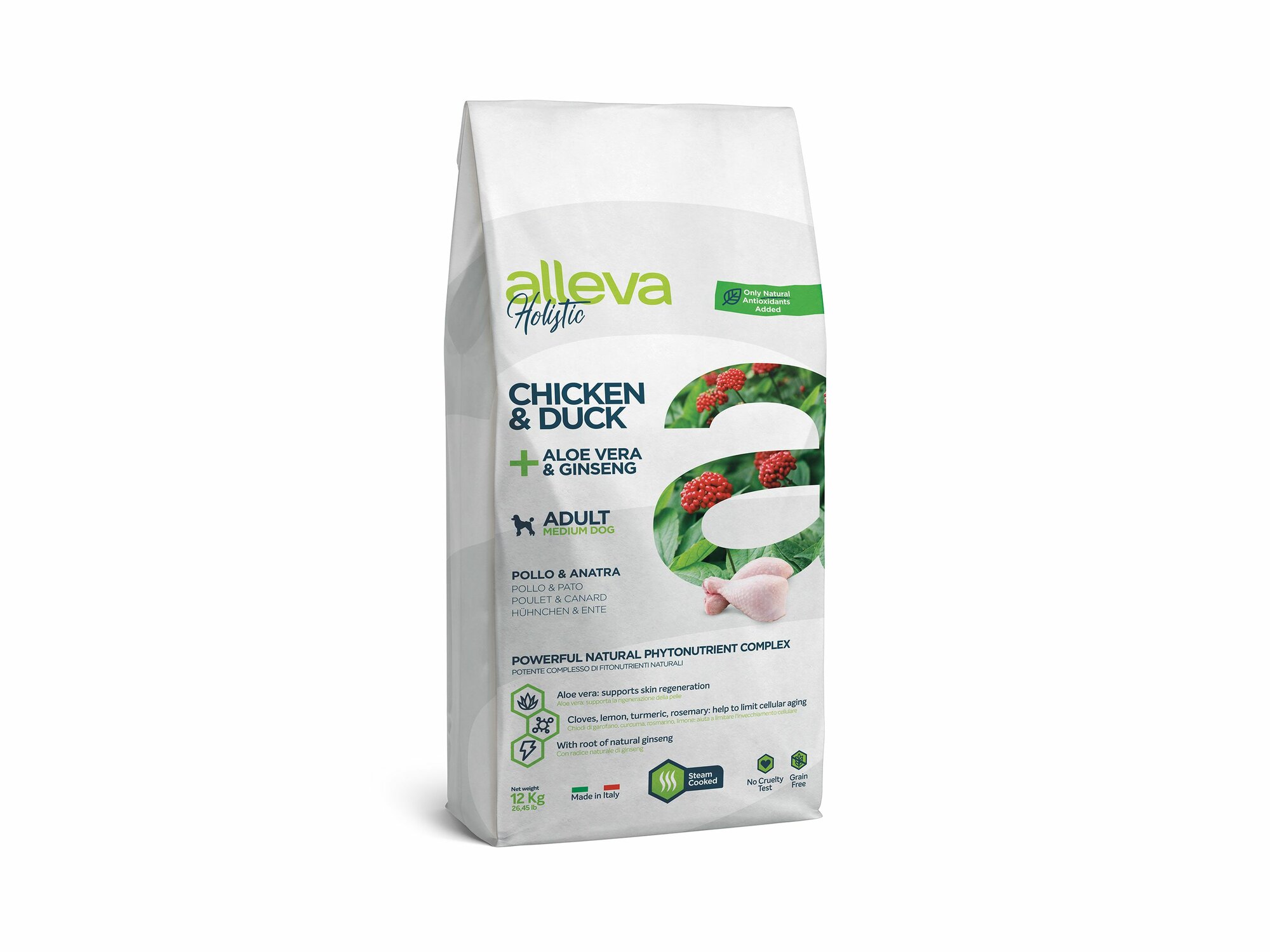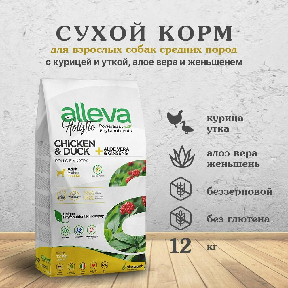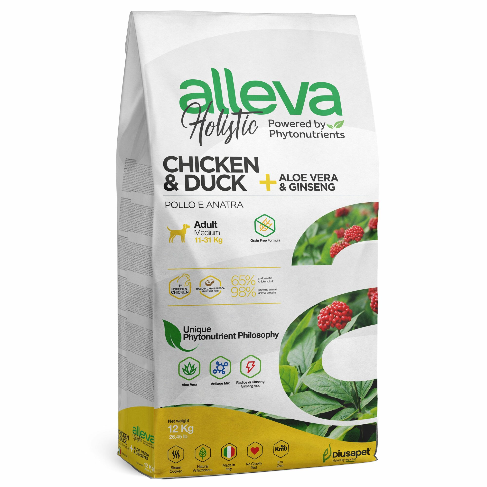 ALLEVA HOLISTIC ADULT DOG MEDIUM CHICKEN & DUCK беззерновой для взрослых собак средних пород с курицей, уткой, алоэ вера и женьшенем (12 кг)