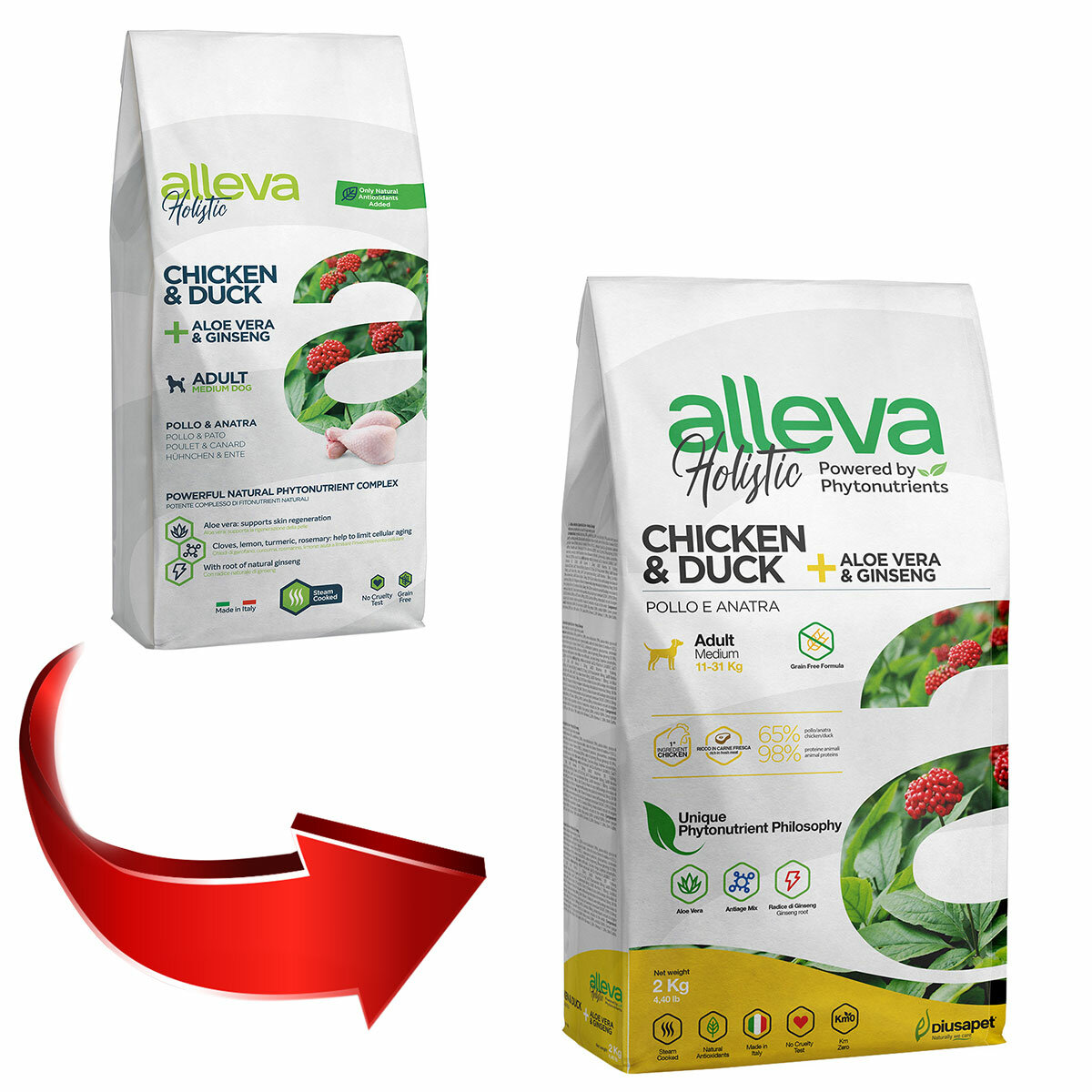 Купить ALLEVA HOLISTIC DOG для собак Adult Chicken Duck Medium / взрослых с курицей и уткой, алое вера и женьшенем 12кг 2400, (1 шт)