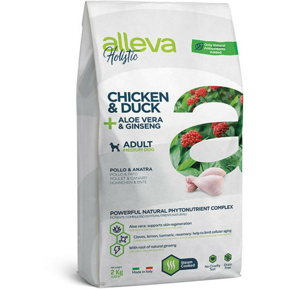 Сухой корм Alleva Holistic MEDIUM для взрослых собак средних пород, с курицей и уткой, алое вера и женьшенем, 2 кг
