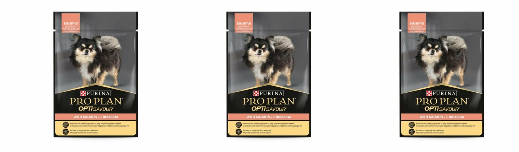 Купить Pro Plan влажный корм для взрослых собак с чувствительным пищеварением, с лососем в соусе, 85 г, 3 шт
