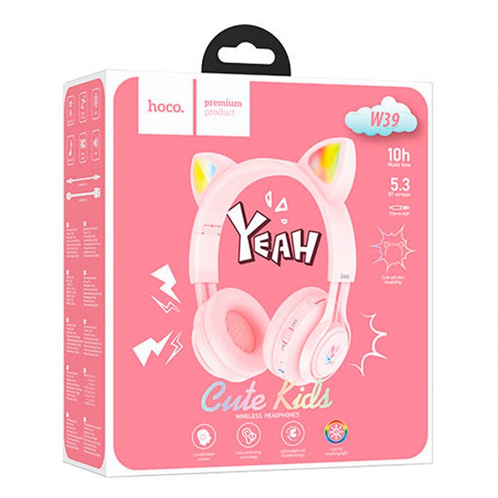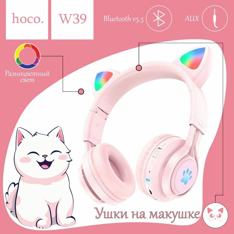 Наушники беспроводные для детей HOCO W39 Cat ear kids wireless headphones Bluetooth (розовые)