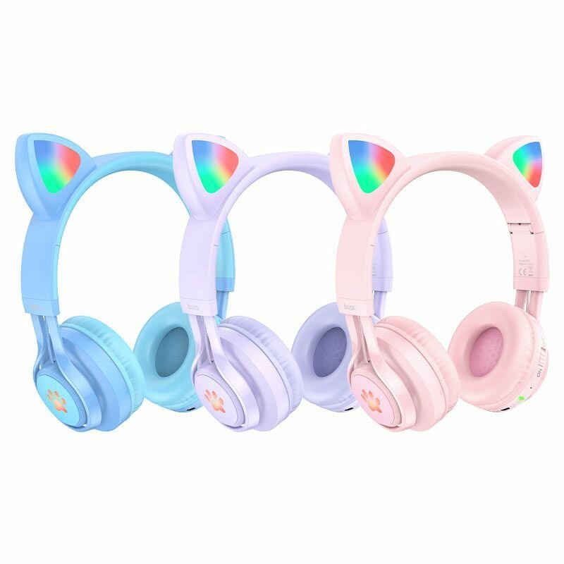 Наушники полноразмерные беспроводные Hoco W39 Cat Ear (Bluetooth) фиолетовый