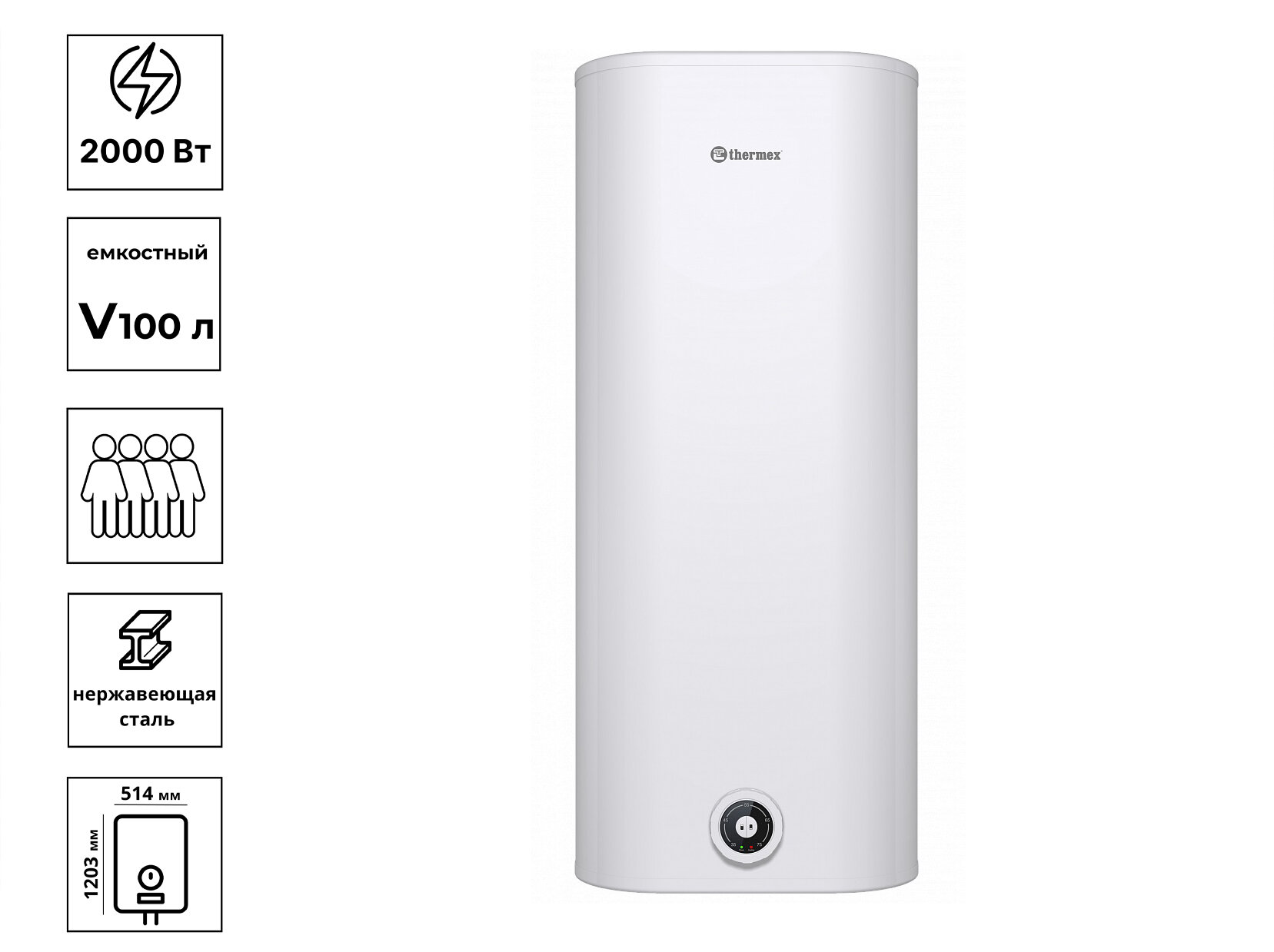 Водонагреватель Thermex MK 100 V (верт/плоск/внутр.бак нерж.сталь.белый) 0,8/1,2/2 кВт