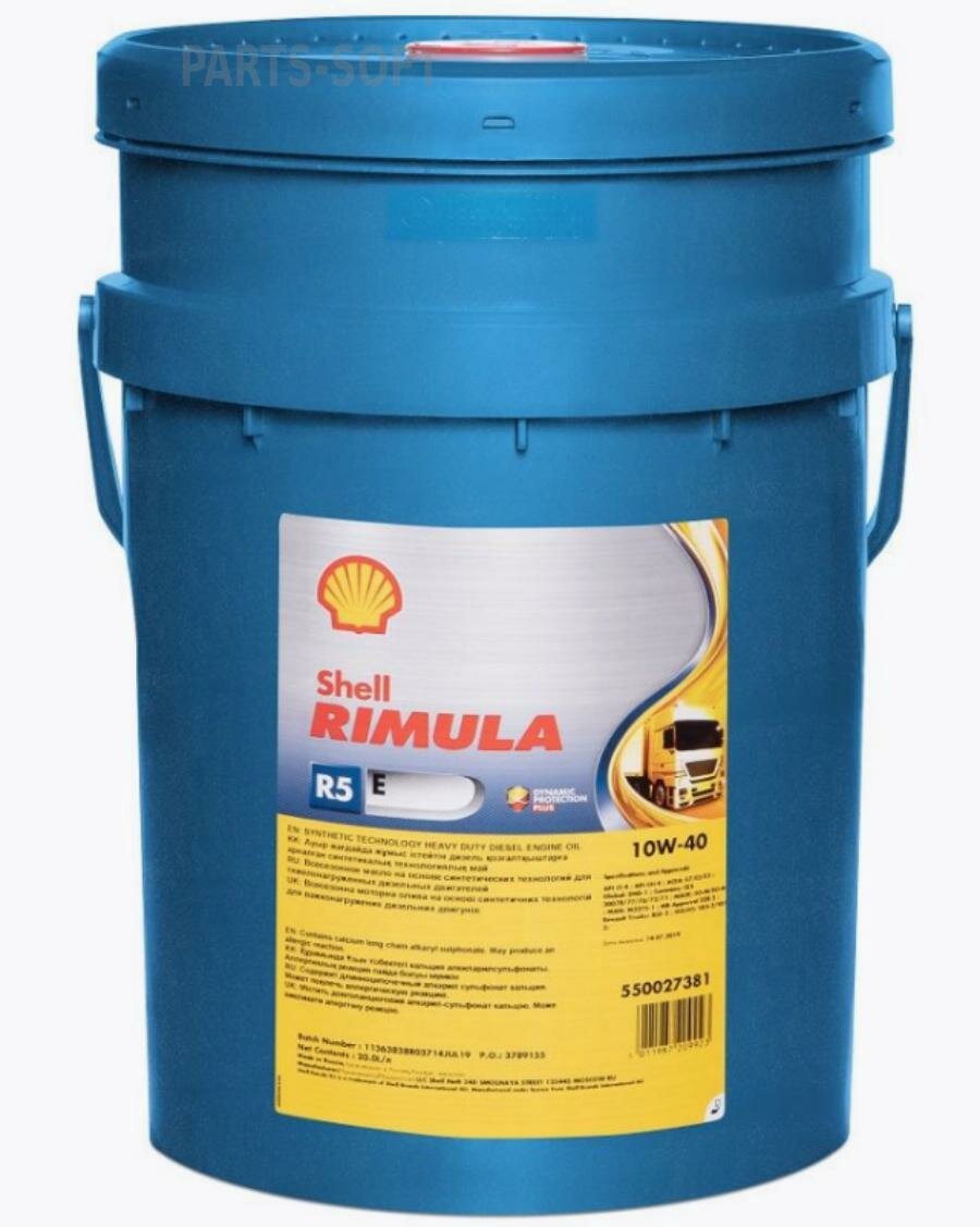 SHELL 550033235 Масло моторное SHELL Rimula R5 E 10W-40 полусинтетическое 20 л 550027381