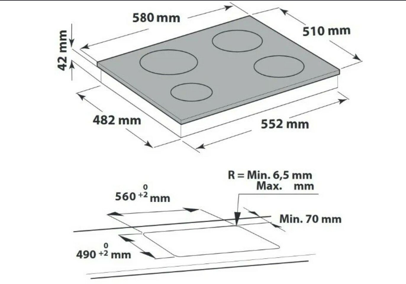 | Размеры конфорок | 145 мм, 210 мм, 120 мм, 250 мм |