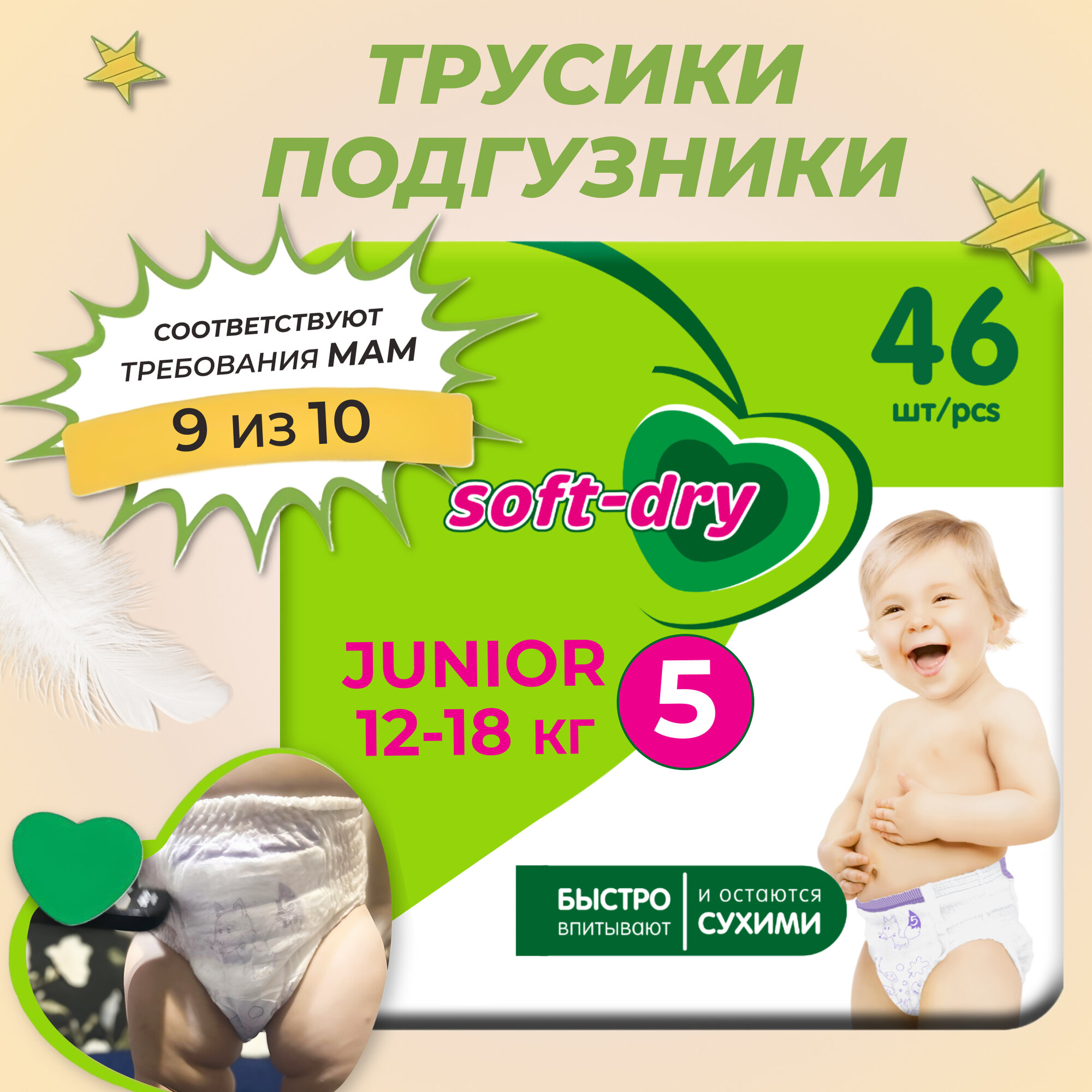 HELEN HARPER Детские трусики-подгузники Soft&Dry размер 5 (Junior) 12-18 кг, 46 шт.