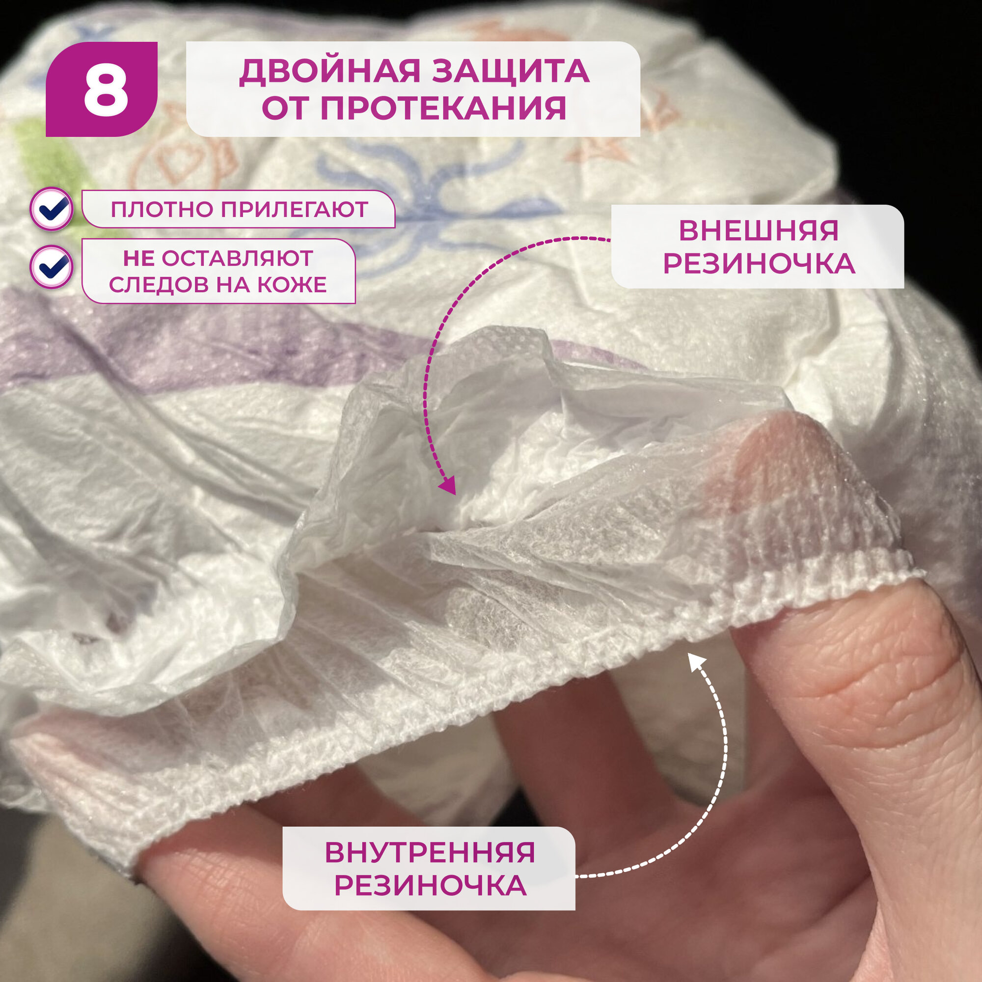 | Плюсы: | Удобные, легко надевать и снимать, много впитывают |