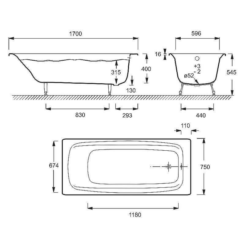 Чугунная ванна 170x75 см без противоскользящего покрытия Jacob Delafon Diapason E2937-S-00