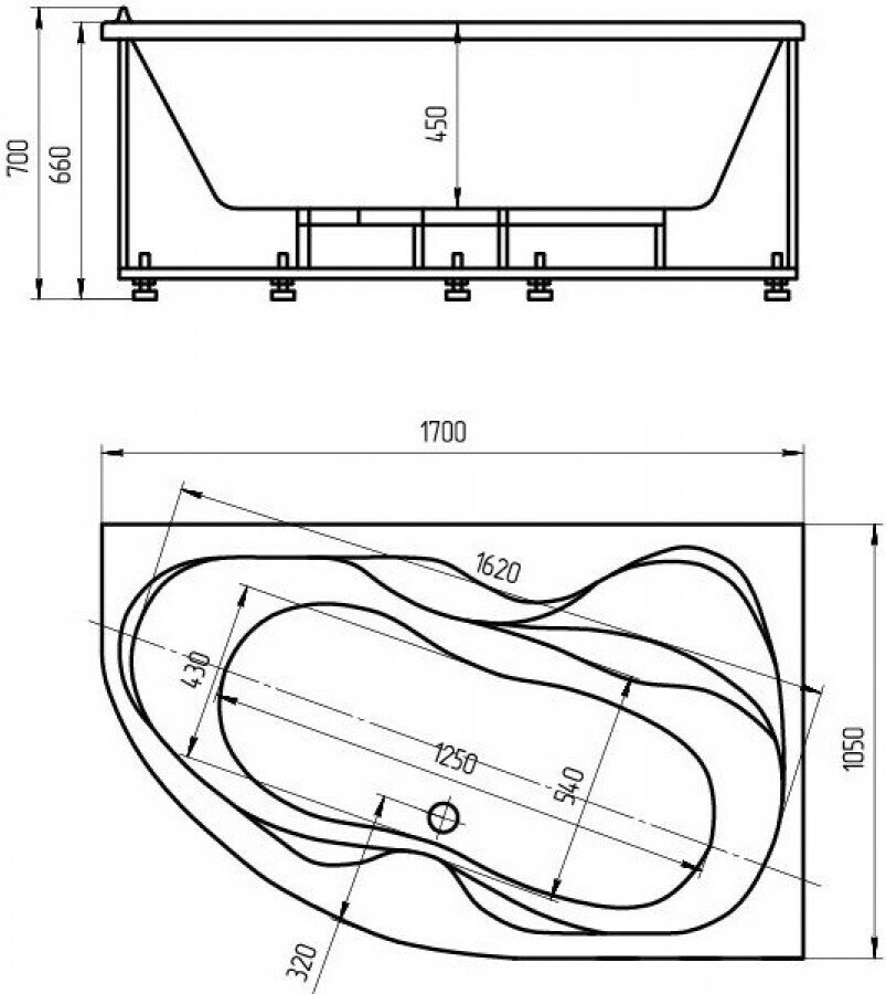 Акриловая ванна Aquatek Вега 170x105 VEG170-0000083