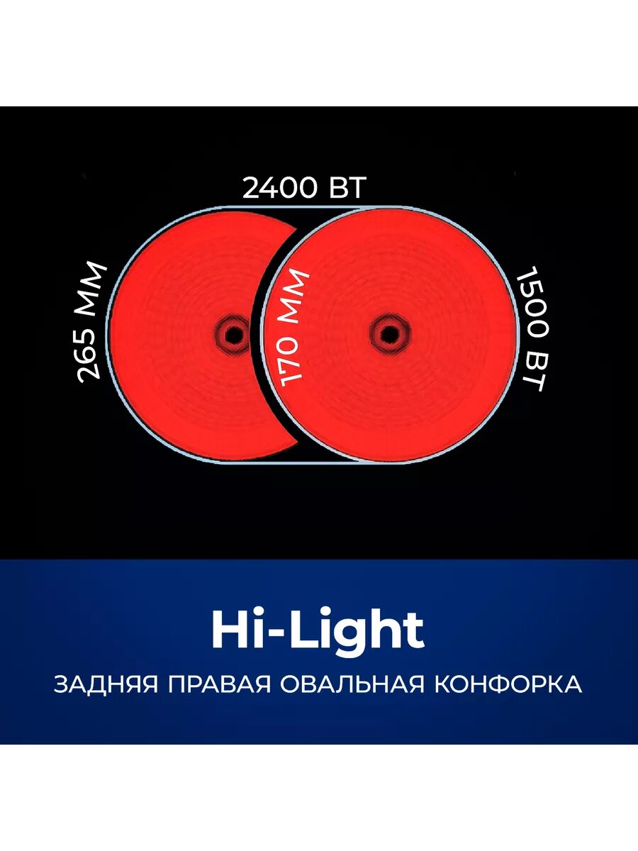 | Специальные конфорки | Hi Light / трехконтурная / с овальной зоной нагрева / керамическая |