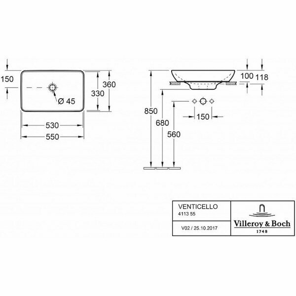 Раковина полувстраиваемая Villeroy & Boch Venticello 55x36 41135501