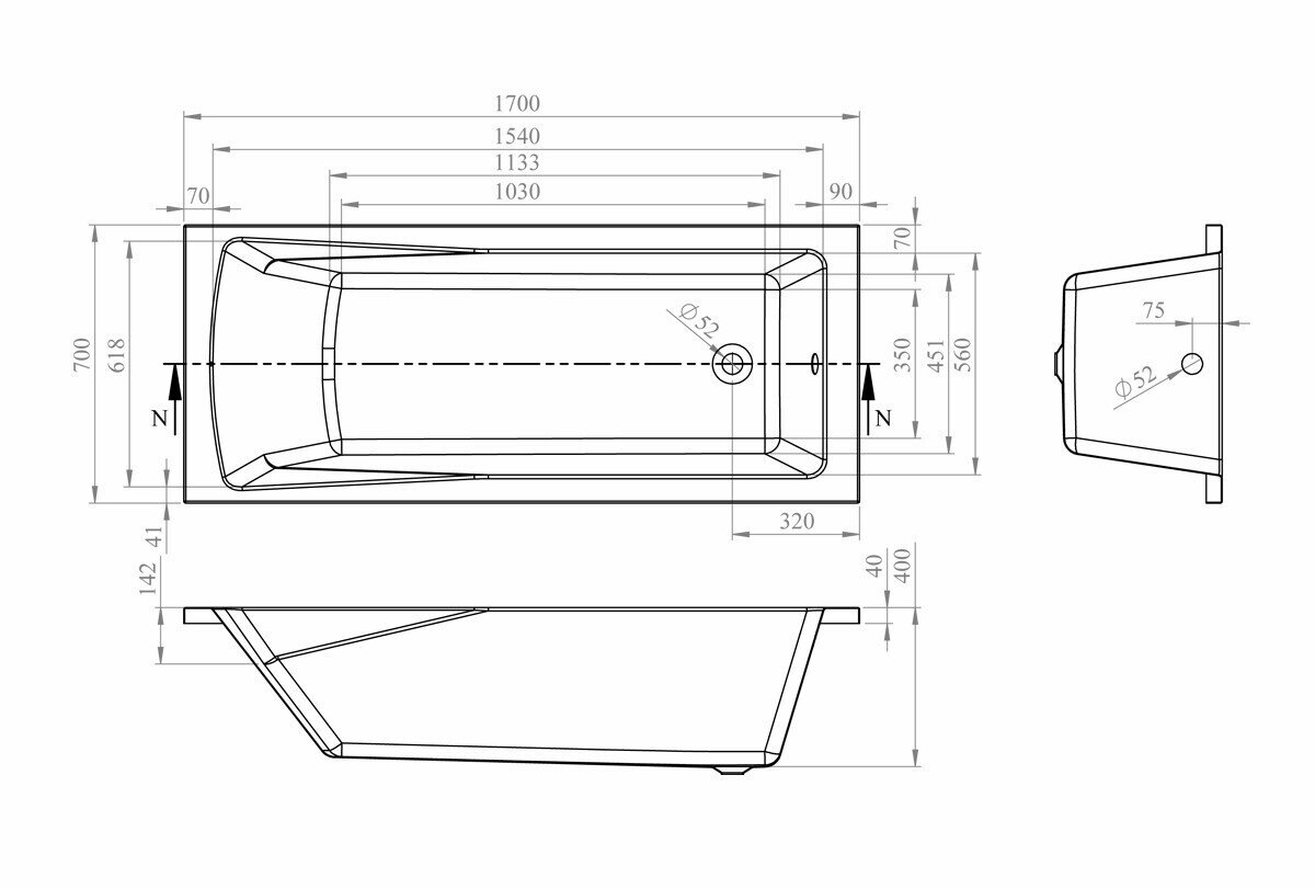 Акриловая ванна 170x75 Lavinia Boho Easter Pro 37060075: прямоугольная ванна 170 x 75 из литьевого акрила с усиленным армированным корпусом