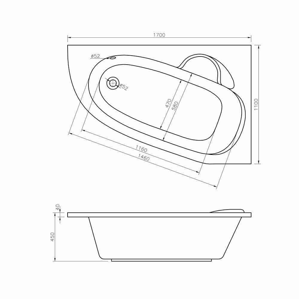 Угловая ванна акриловая 170 x 105 Lavinia Boho Grance Hill 3703170L: асимметричная ванна из литьевого акрила с усиленным армированным корпусом (левый разворот)
