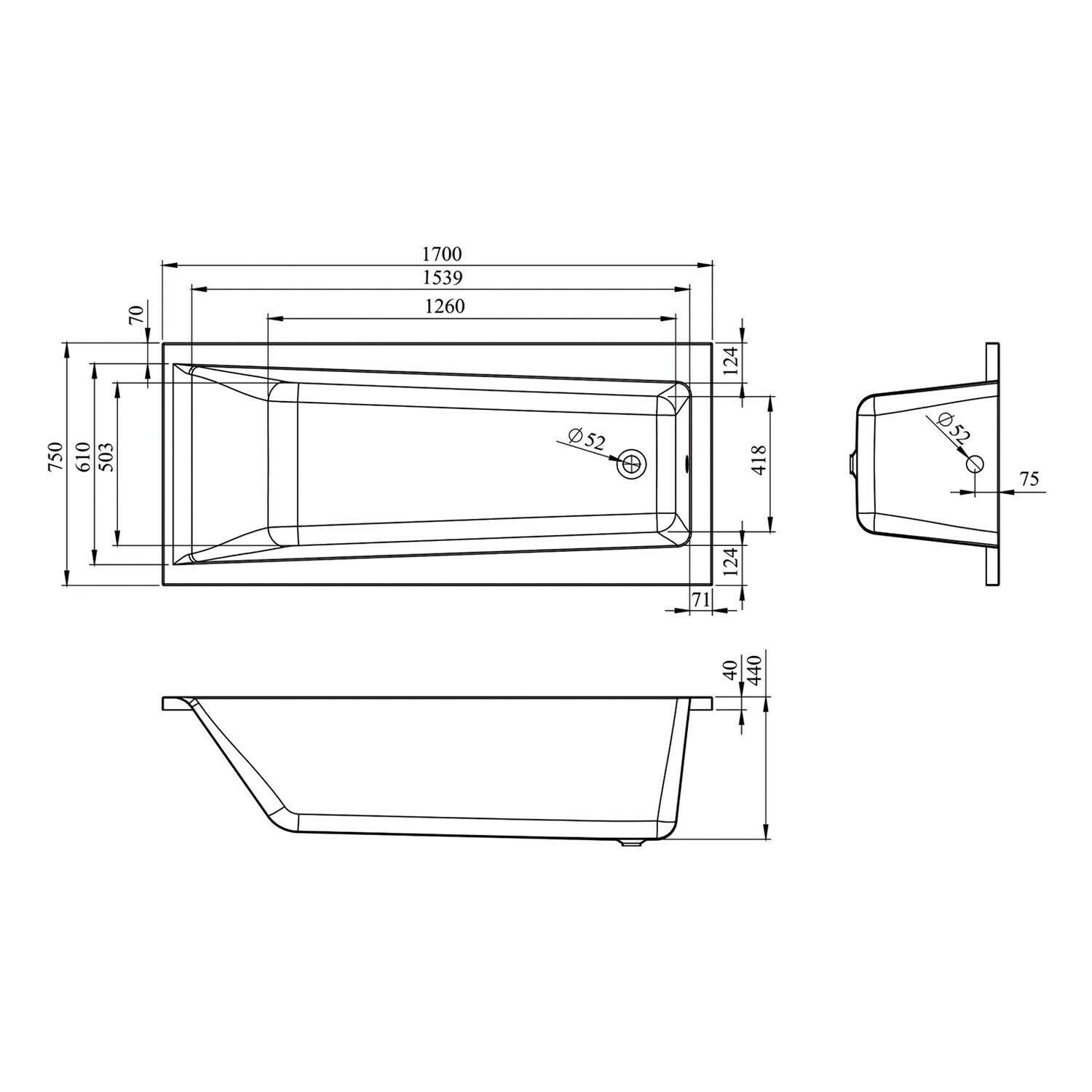 Акриловая ванна 170x75 Lavinia Boho One 37010075: прямоугольная ванна 170 x 75 из литьевого акрила с усиленным армированным корпусом