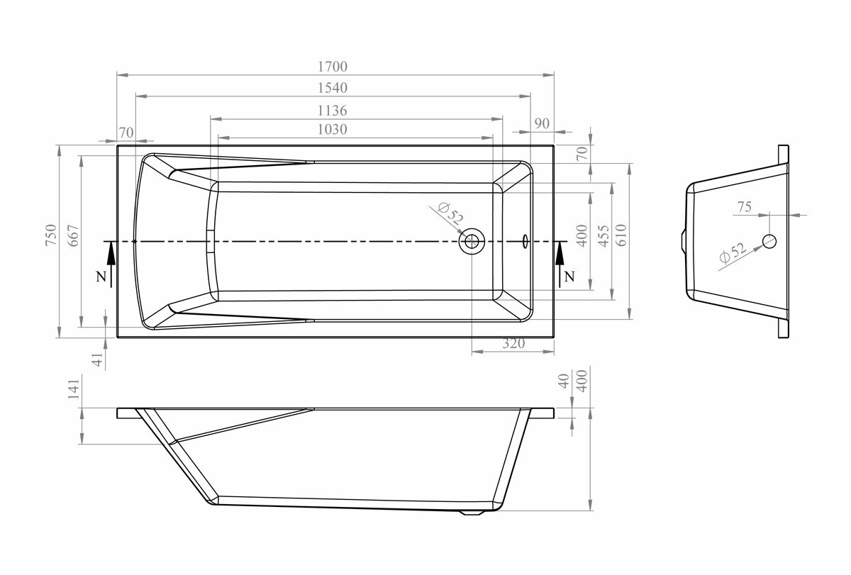 Акриловая ванна 170x75 с каркасом Lavinia Boho Pure S1-37100075 в наборе 2 в 1: прямоугольная ванна 170 x 75 см, каркас